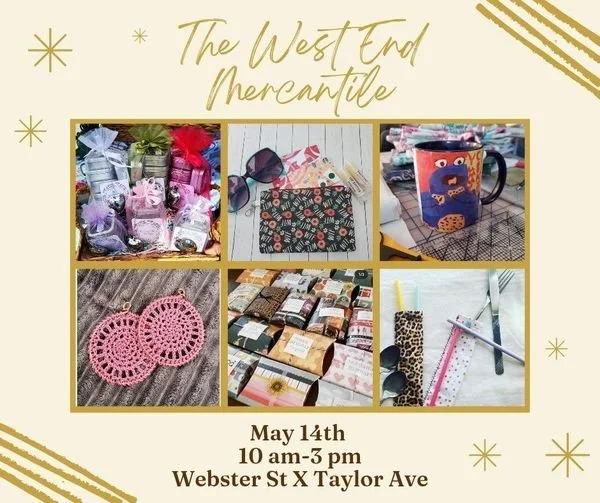 Come to the West End Mercantile this Saturday, May 14th. from 10AM-3PM. It's on Webster and Taylor in Alameda. I will be selling original paintings, prints, cards, tote bags, t-shirts, etc... Check out all the other artists/vendors as well. Hope to see you there!!!!!!!!